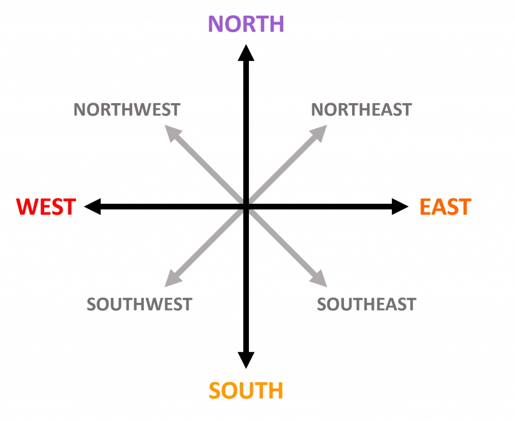 For an eight-point compass, we have our standard four directions, and four intermediate directions.