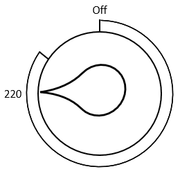 Since the off setting is not accessible this way, we must conclude that the off setting is three quarter turns anticlockwise from 220.