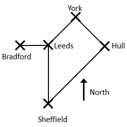 Question 2: Here’s a basic map of some Yorkshire cities, and the roads linking them.