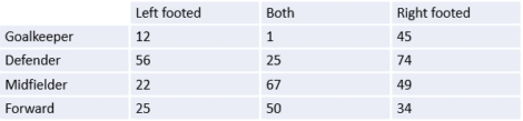 The table below considers all Premier League players, their footedness and their usual position.