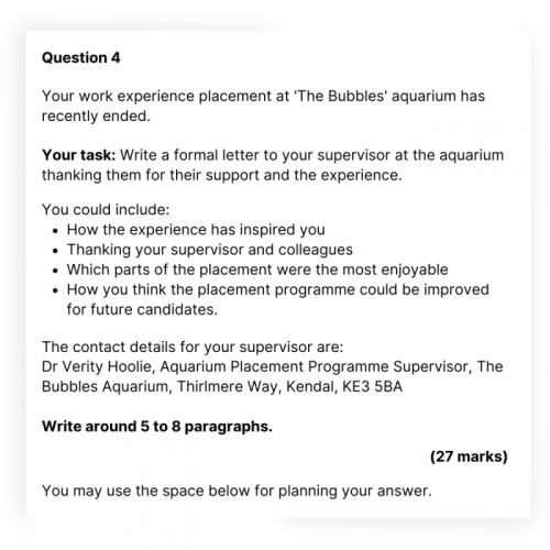 Whilst the skills needed for the reading paper can be practiced by reading and analysing texts, (for example Edexcel, City and Guilds or AQA), the same is not necessarily true for the writing task.