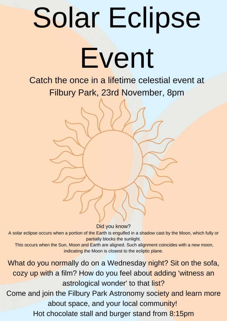 the two subheadings are ‘Catch the once in a lifetime celestial event at Filbury Park, 23rd November, 8pm‘ and ‘Did you know?‘