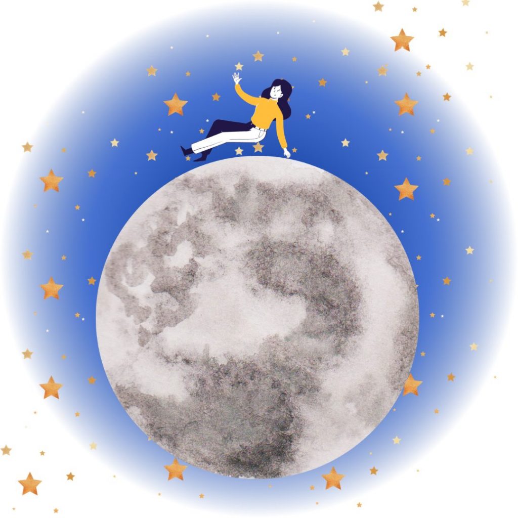 Here, ”over the moon” describes how happy the person is, rather than that they have taken a trip into outer space!
