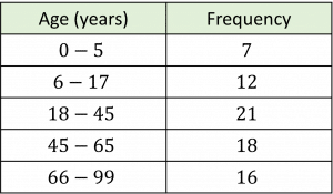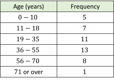 Question 2: The grouped frequency table below shows data about the ages of people on a bus.