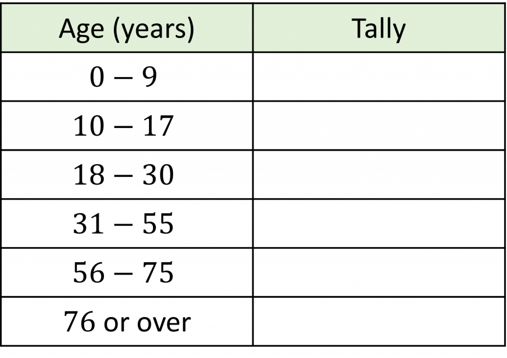 When collecting the ages of people, there is technically no maximum age that someone could be, so make sure you include a class like “… or over”.