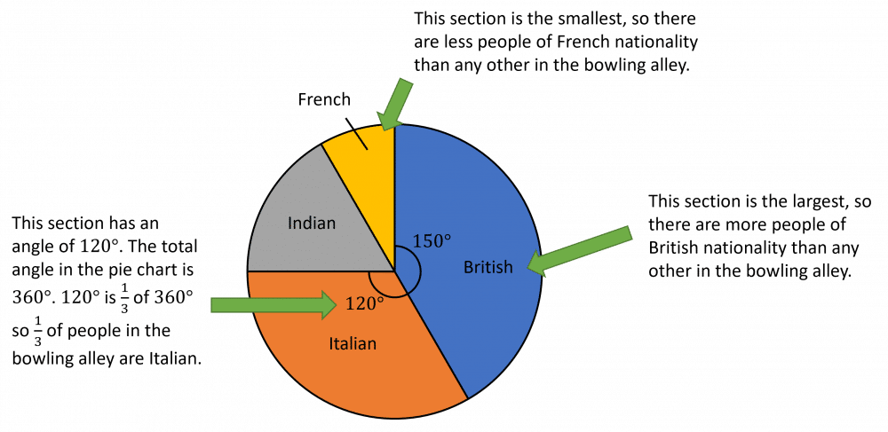The pie chart below shows the nationalities of people in a bowling alley.