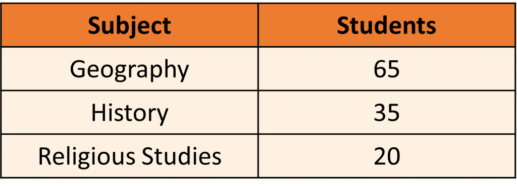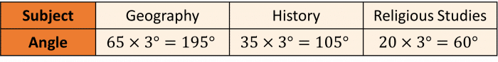 The pie chart will need three sections – one for Geography, one for History and one for Religious Studies.