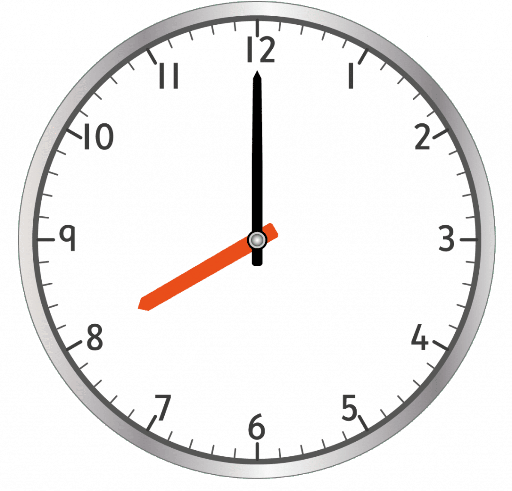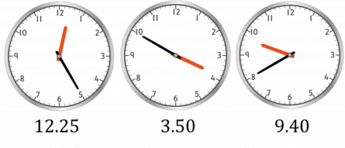 Note: If the big hand points to 12, this does not mean it is 12\times5=60 minutes past, it means it is on the hour.