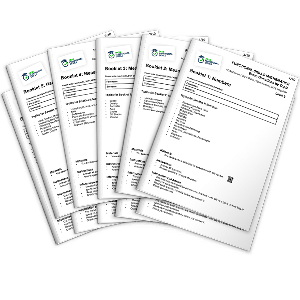 The best way to pass Functional Skills Maths is do revise effectively. Make sure you cover all the subjects on the Functional Skills Maths Level 2 Topic List. We also offer comprehensive Functional Skills courses which have been shown to increase first time pass rates in students who complete them. 93% of students pass their exam when completing the Pass Functional Skills Course.*