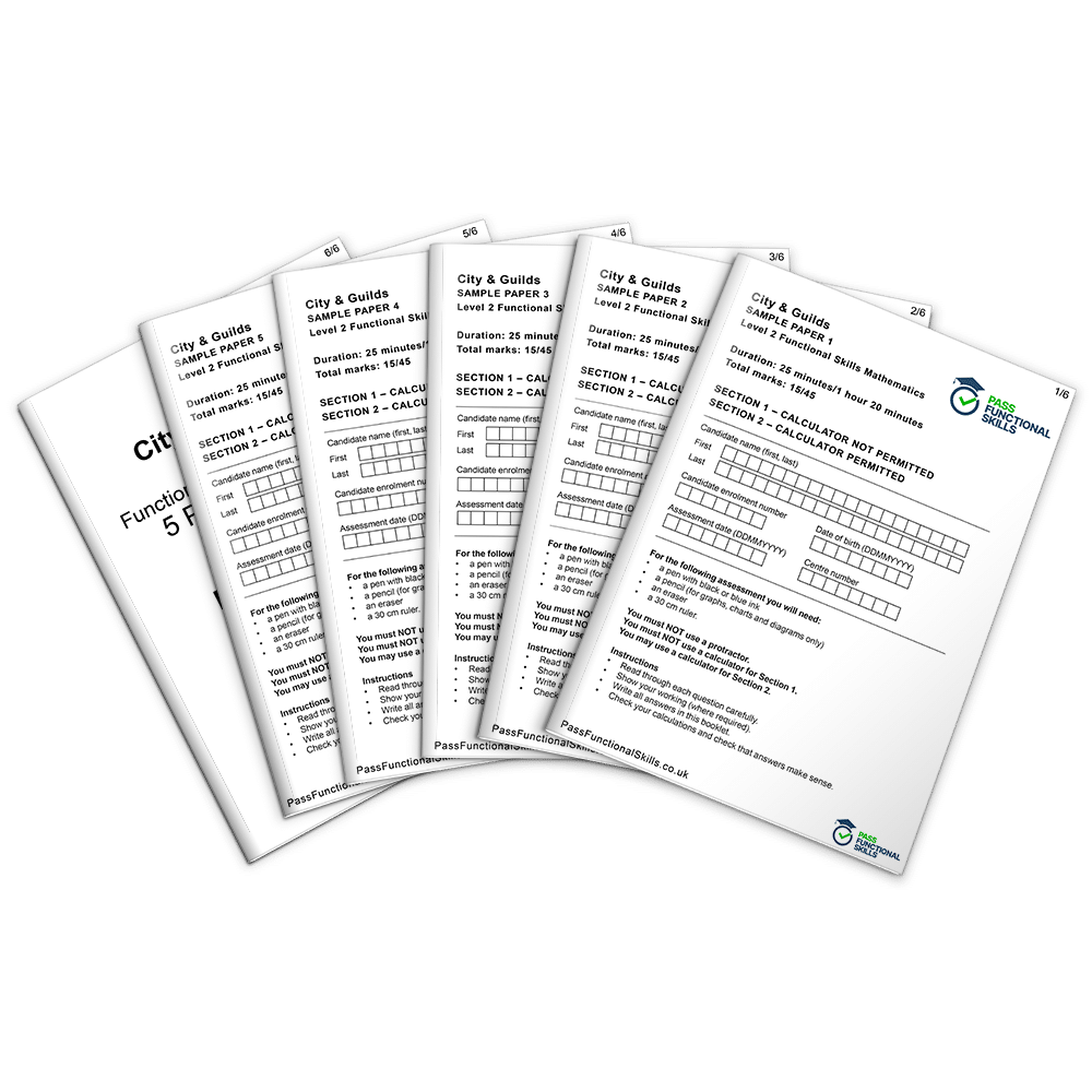Functional Skills Level 2 is equivalent to a pass at GCSE (level 4 or grade C). On this page, you will find Functional Skills Maths Level 2 past papers, sorted by exam board. Every exam board has the same curriculum for Functional Skills Maths Level 2, and you will be assessed on the following skills: