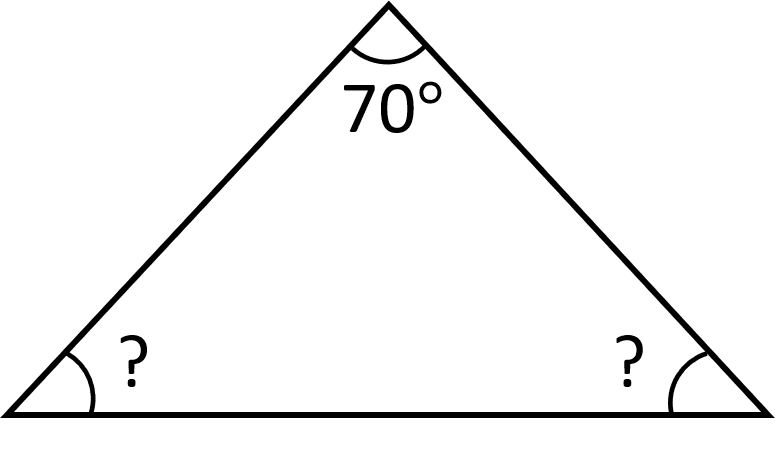 The diagram is an isosceles triangle. Find the missing angles in this isosceles triangle.