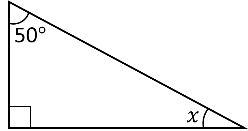 x = 180 \degree - 90 \degree - 50 \degree = 40 \degree