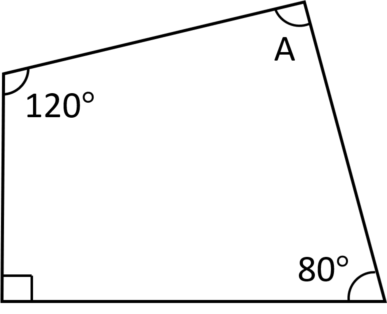 A = 360 \degree - 120 \degree - 90 \degree - 80 \degree = 70 \degree