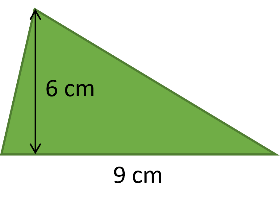 \text{Area of triangle} = \dfrac{1}{2} \times 9 \times 6 = 27 \text{ cm}^2