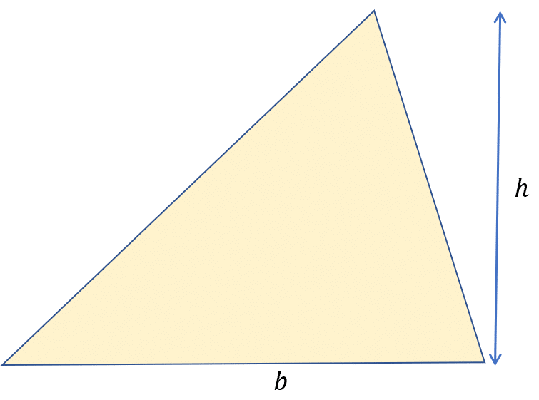 where b is the base width of the triangle and h is the vertical height as shown in the diagram on the right.