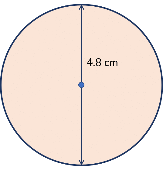 Calculate the area of the circle shown on the right with a diameter of 4.8 cm to 1 decimal place.