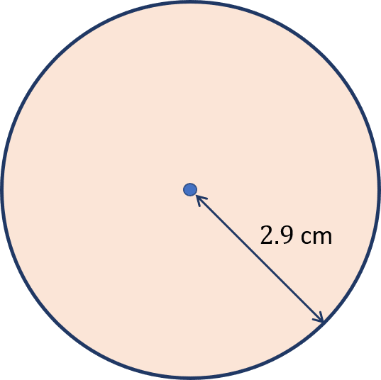 area of the circle = 3.14 \times 2.4^2=\textcolor{orange}{18.1} cm^2 (1 dp)
