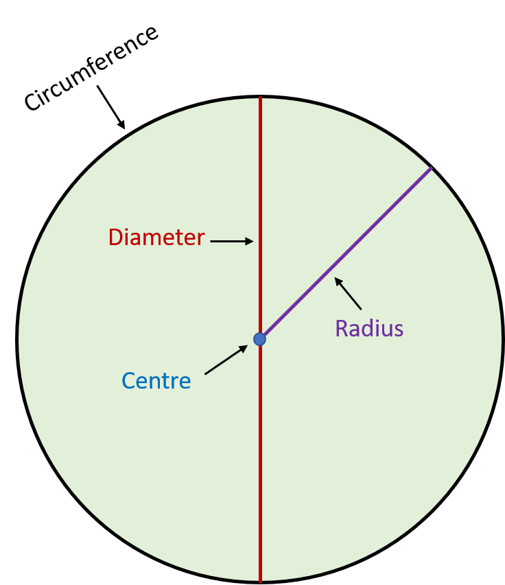 The radius of a circle is the distance from the centre to the circumference. The radius is always half of the diameter.
