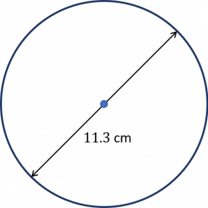 Question 2:Â Calculate the area of the circle below, which has a diameter of 11.3 cm.