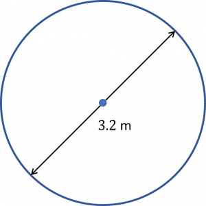 Question 4:Â Calculate the circumference of the circle below with diameter of 3.2 m, giving your answer correct to 2 decimal places.