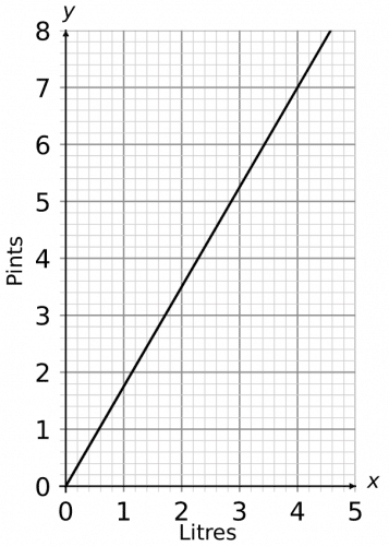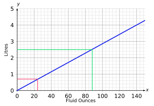Example: The conversion graph shown is used for converting between litres and fluid ounces.