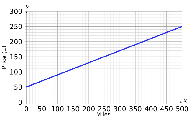 The relationship between miles driven and the price of a hire car is shown on the graph.