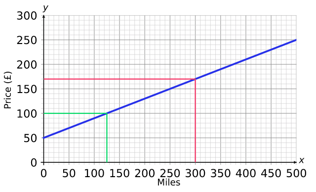 \textcolor{red}{300} miles = \textcolor{red}{£170}