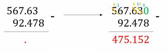 Example: Calculate 567.63 - 92.478