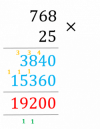 Example: Calculate 7.68 \times 2.5