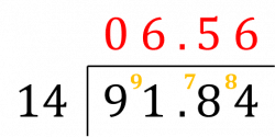 \dfrac{9.184 \times 10}{1.4 \times 10} = \dfrac{91.84}{14}