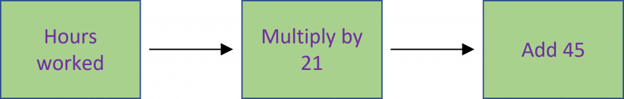 Step 1: Put in \textcolor{purple}{48} into the function machine – in place of ‘Hours worked’.