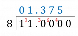 Here, we just need to divide 11 by 8. The best way to do this is to use the bus stop method: