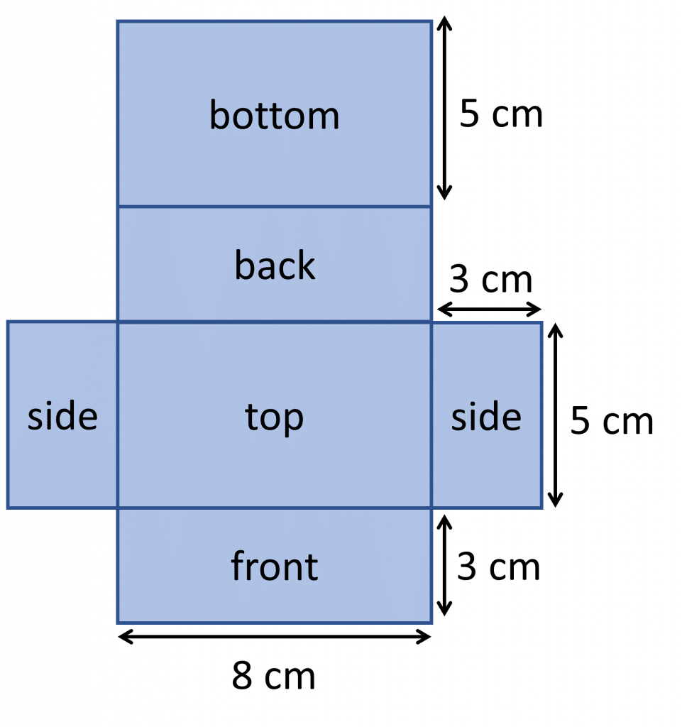 So, we can draw the net of the cuboid by connecting the rectangles together and labelling the dimensions: