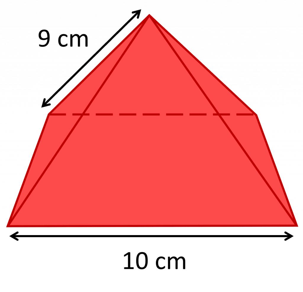 A pyramid will feature a 2D shape as its base, e.g. a triangle or a square, with each edge linked to a triangular face. These triangular faces all meet at a central point above the centre of the base. The net of a pyramid consists of the base, with triangles connected to each edge of the base.