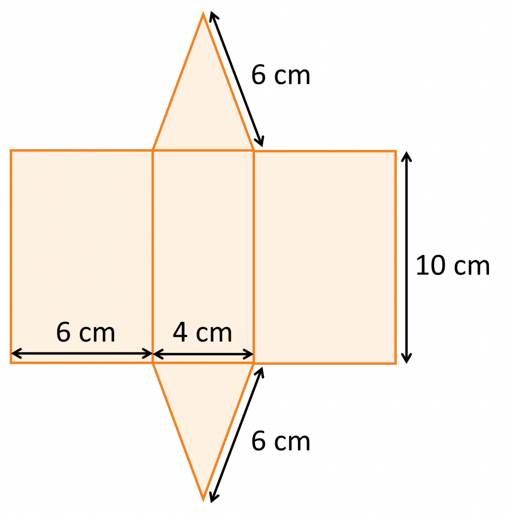 Then, connect the two triangles, with the base of the triangle of length 4 cm, to the edges of the rectangle of width 4 cm.