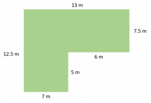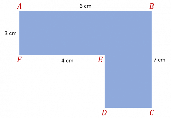 Often you will get asked to work out the perimeter of shapes similar to the one below, so you will need to use the given measurements to work out the missing measurements.