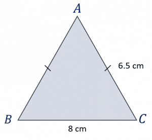 So the perimeter of the triangle = 8+6.5+6.5=21 cm