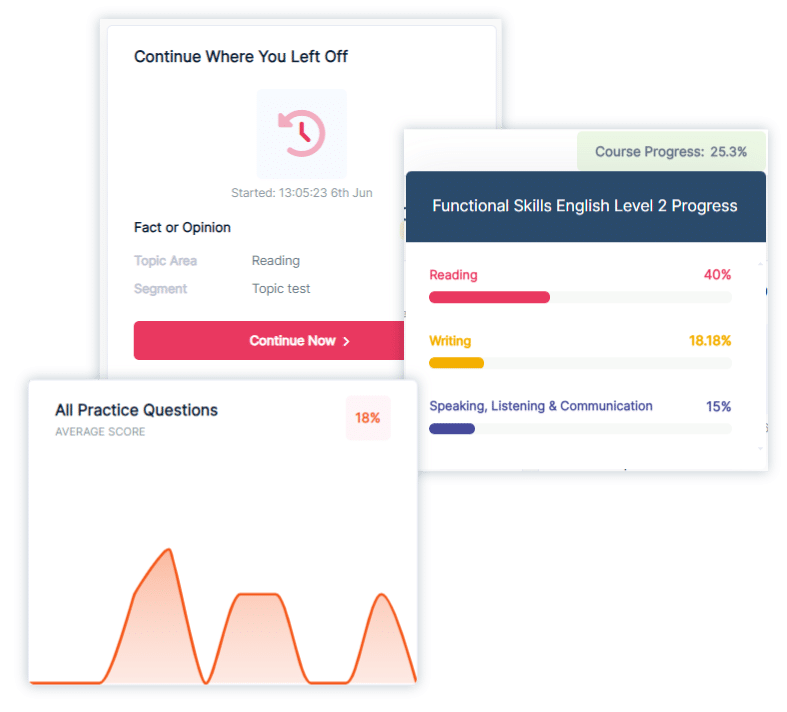 When you begin the Functional Skills English Level 2 Online Course, you'll first complete a Subject Knowledge Assessment. This quick check helps identify the areas of English you’re confident in and those you need to focus on. Once completed, you'll receive a personalised topic list, guiding you on where to concentrate your revision to help you pass the exam.
